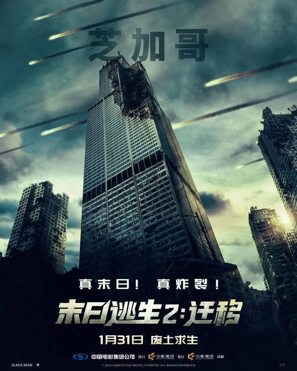 全新的定档海报则以极具冲击力的方式将影片中的灾难场面身临其境的展现给观众。达拉斯、纽约、芝加哥、亚特兰大、旧金山、费城、洛杉矶等无数熟悉的城市地标,在巨型陨石的冲击下被摧毁、崩塌,变为废墟,熊熊的陨石烈焰与裸露的钢筋混凝土昭示着灾难的毁灭与残酷,昔日繁华之地一秒变成死亡禁区!让人不禁好奇加里蒂一家究竟如何在这种命悬一线的末日之中逃出生天?