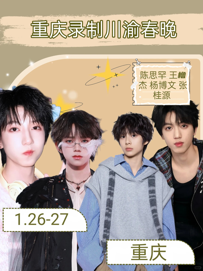 一手正规名额!川渝春晚 1.24-27 重庆录制,TF 家族四代全员 + 姚琛 井胧等,正规名额速抢