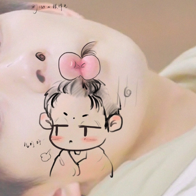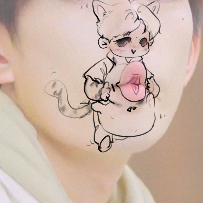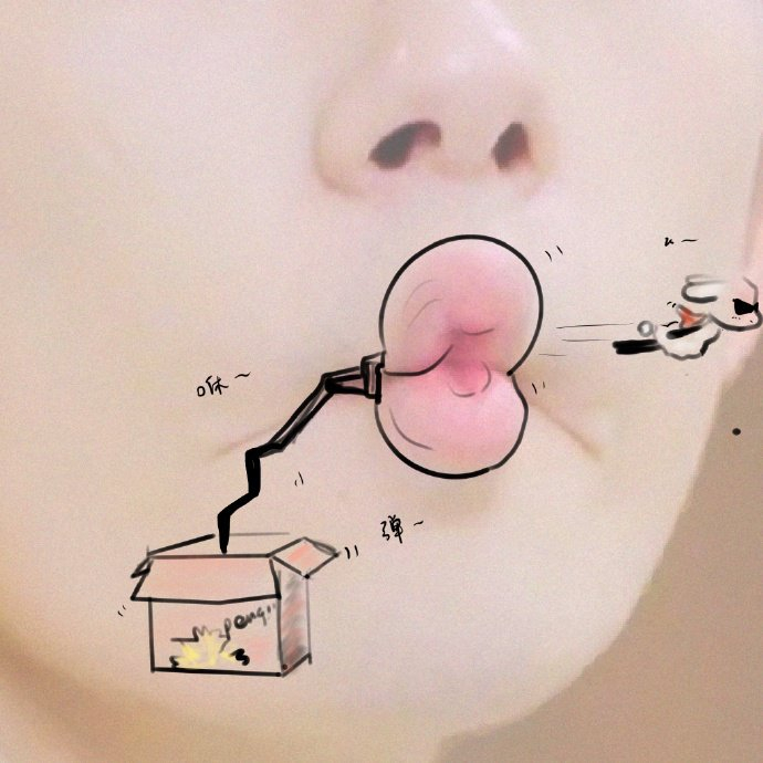 嘴巴上的易只羊,显然是千纸鹤的常规脑洞,最妙的是嘴巴上托起一杯果汁,若是那柠檬装饰换成榴莲,或许会更有意思,当然坐在千玺的嘴巴上开心地哼着歌,这种神态想象十分接地气。