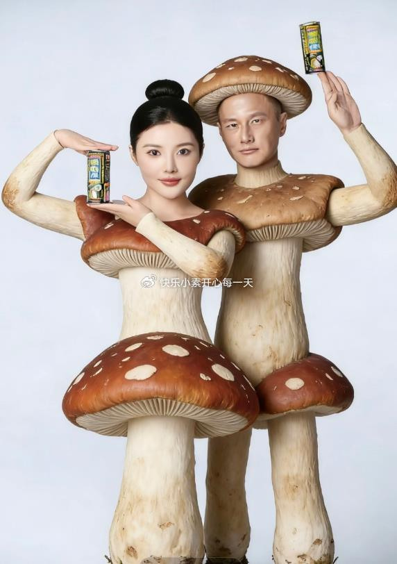 云南人民给新婚夫妇送上祝福,这一次,他们变成了蘑菇版本的夫妻,搞笑。