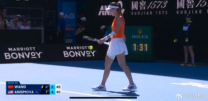 王欣瑜6:7、4:6不敌阿尼西莫娃。