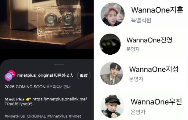 在 2026 年的開年第一天, Mnet 官方帳號無預警釋出一則預告,文中寫著 「 2026 COMING SOON 」,背景音樂正是當年 Wanna One 解散曲《春風》,並附上 Hashtag 「我們再次相遇」,成員之一黃旼炫也有分享這則貼文。消息一出讓無數粉絲們激動不已,猜測是不是 Wanna One 要回來了 !