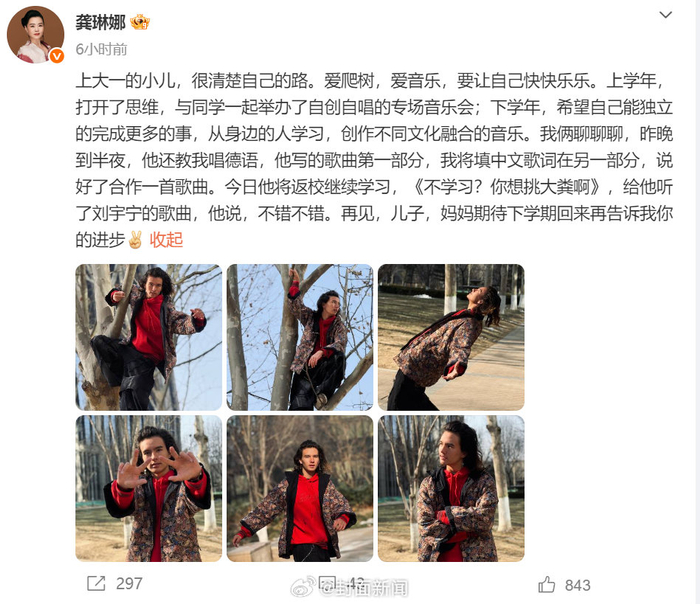【#刘宇宁抽象歌曲真被用来劝学了#】#刘宇宁用最朴素的词劝最硬核的学# 1月27日,@摩登兄弟刘宇宁 发布新歌《不学习?你想挑大粪啊》,希望能激励求学路上的粉丝。次日,@龚琳娜 发文分享,称正逢上大一的儿子返校学习,给他听了刘宇宁的歌曲《不学习?你想挑大粪啊》,并表示期盼儿子学业取得进步。