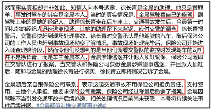 三个重点细节看完,不难发现除了金晨之外,金晨经纪人、助理都是帮凶,不出意外,保险公司也要承担责任。