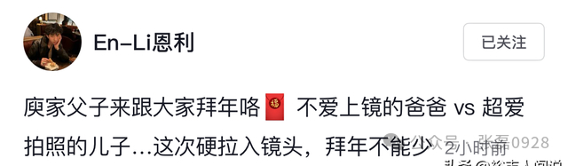 面对镜头时的微妙互动,父子间流露出的自然亲昵让人倍感温暖。即便庾澄庆有了新的家庭,但对庾恩利的爱却从未改变。这种深入骨髓的父爱,在这个新年时刻得到了最好的诠释。