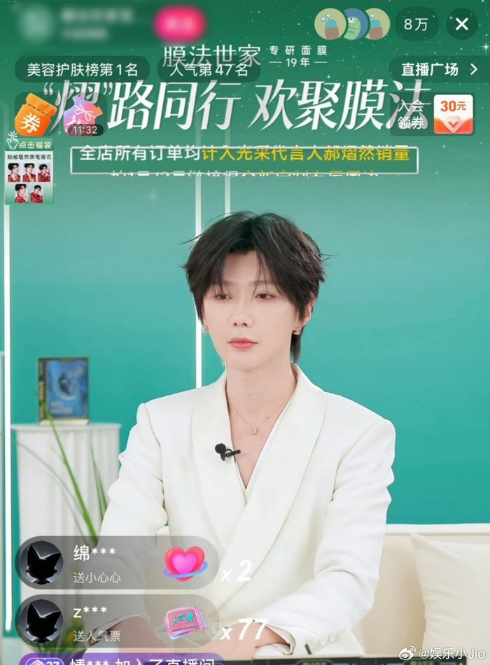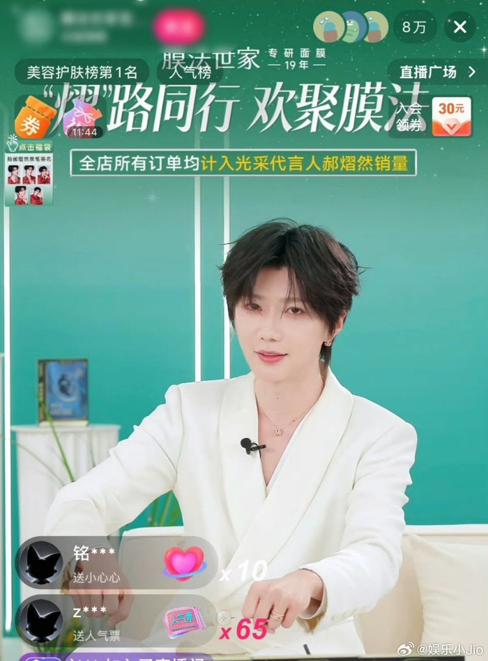 郝熠然直播间在线人数突破八万