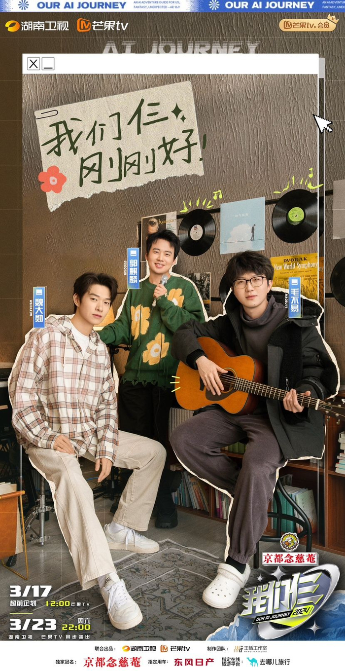 由王恬工作室制作的旅行探索真人秀节目《我们仨》将于3月23日起登陆湖南卫视、芒果TV播出。湖南广电发布的首个AI导演“爱芒”(英文名:AIM)将在节目中与三位常驻嘉宾郭麒麟、毛不易、魏大勋携手合作,结伴前往国内四个地标城市。自官宣以来,爱芒导演的全新亮相以及郭麒麟、魏大勋、毛不易三位好友的“熟人局”出游在全网备受期待,播前热搜超300个,超9次登顶各大热搜榜。在首期节目中,三位常驻嘉宾将依次到达本次旅程首站长白山,这场融合科技、充满冒险的惊喜之旅马上启程。