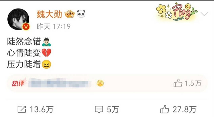 微博之夜魏大勋念错明信片,魏大勋不语只是一味公关发了三个带“陡”的成语