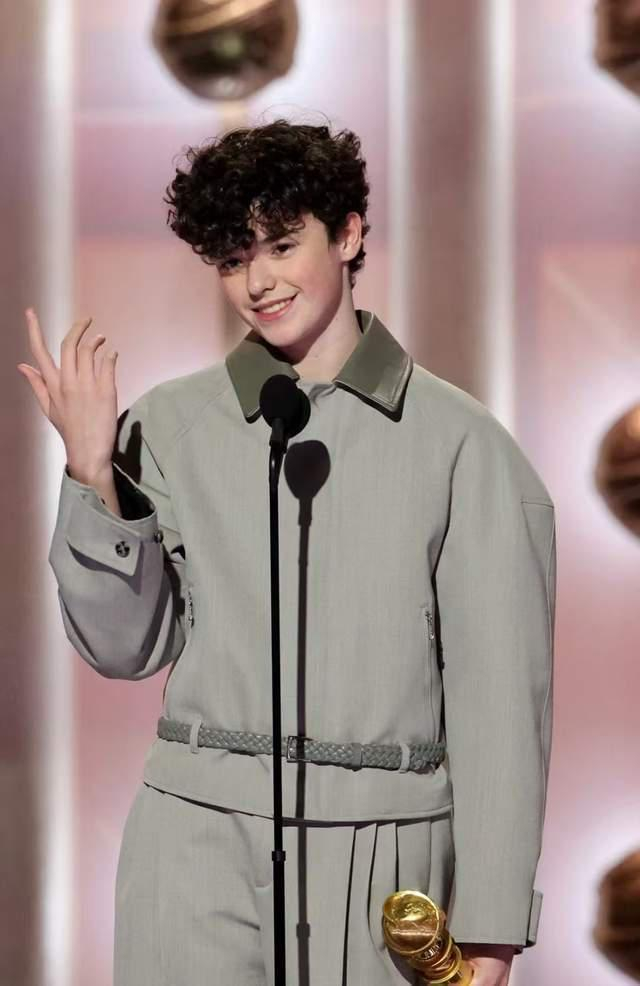 当晚的颁奖礼上,当主持人念出欧文・库珀的名字时,这个青涩的少年脸上写满了难以置信,走上领奖台时还带着一丝腼腆。" 哇,站在这里拿着金球奖,感觉一点也不真实," 他握着沉甸甸的奖杯,声音略带颤抖地开启了获奖感言," 我和我的家人经历了一段难以置信的旅程,我们永远感激所有帮助过我们的人。" 随后,库珀分享了自己走上演艺道路的小插曲,坦言最初对表演并没有十足信心," 一开始我以为,‘我可能还行,也许很糟糕,我永远不知道’,所以我冒险去上了戏剧课。"