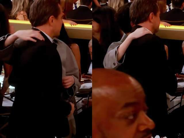 颁奖典礼现场还发生了一段有趣的小插曲。获奖后的库珀难掩激动,鼓起勇气主动去找自己的偶像莱昂纳多・迪卡普里奥合影。照片中,库珀一开始还略显局促,乖乖摆出合影姿势,下一秒却大胆地拍了拍小李子的肩膀,这一幕被现场镜头捕捉下来,迅速在网络上传播开来。网友们纷纷调侃:" 小孩哥也太敢了!刚拿金球奖就敢拍小李子肩膀,这勇气绝了 "" 少年自有少年狂,获奖后追星都硬气了 "" 这大概是追星人最羡慕的画面,用实力站到偶像身边 "。