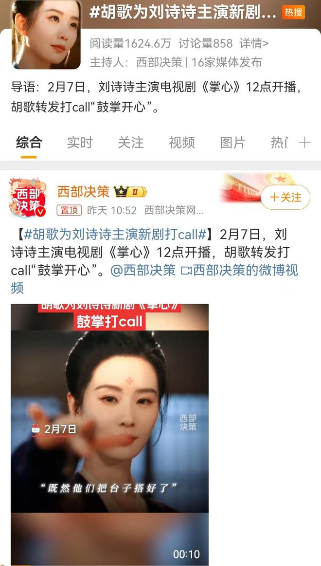 2月7日,一则关于胡歌和刘诗诗的消息在社交媒体上迅速传播,引发了广大网友的热议。原来,刘诗诗的新剧《掌心》播出后,好友胡歌专门在社交平台上发文为刘诗诗的新剧打call,这一举动让粉丝们激动不已,纷纷感叹:“这友情也太好了吧?”要知道,胡歌在娱乐圈中一向低调,很少会为别人的剧做宣传,这次他主动为刘诗诗发声,足见两人之间的深厚情谊。