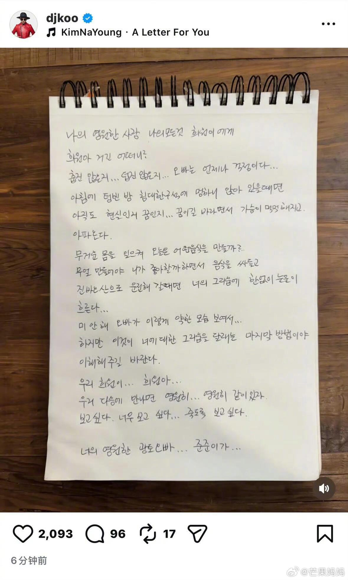 #大S雕像#具俊晔发了手写信悼念大S:等我们来生相见,要永远在一起…这世间真的有刻骨铭心的爱😭