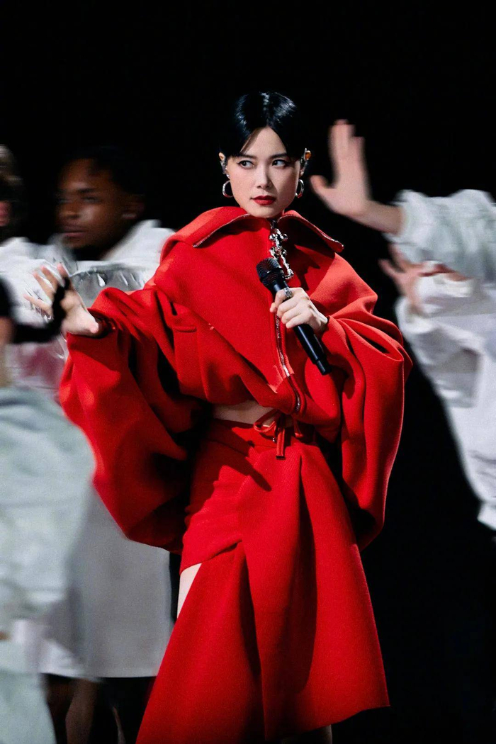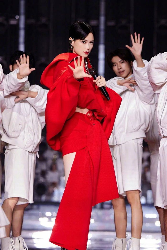 在李宇春出场前,歌迷对于跨年演唱会的期待在于她2024年最后一支、2025年首支单曲《回春天》。不料,在气势恢弘的《我的王国》乐声中,红妆耀眼的李宇春以一份《跨年组曲》拉开第20年跨年零点秀的序幕。