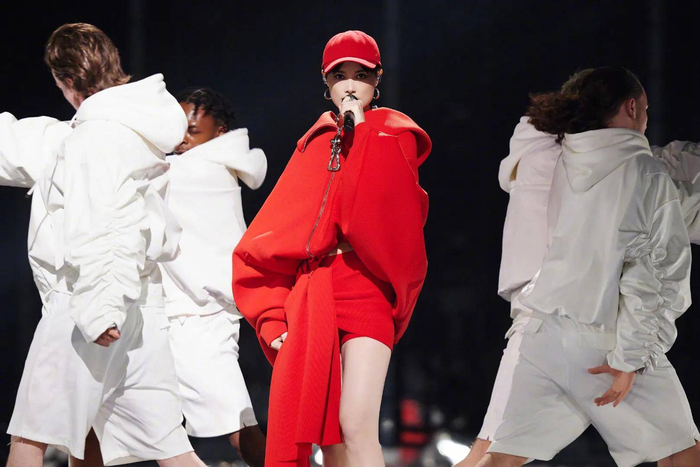跨年组曲第一首,来自2020年全网狂欢的《无价之姐》,弄潮搏浪,认真亮相说的就是从2005年到2025年的李宇春。随后,跃动的《哇》、反讽的《流行》、有态度的《野蛮生长》、初心未改的《西门少年》联袂而至……,当首次打破次元障壁的《普通disco》响起时,从天而降的12个飞盘舞台,带领观众在普通的动次打次之中冲上云霄。