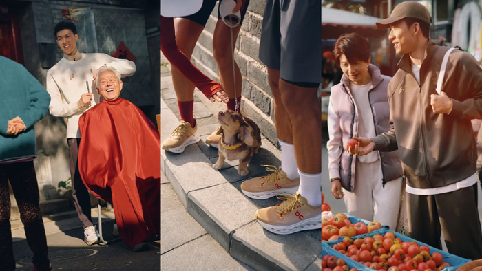 On昂跑春节贺岁广告短片中,穿着品牌限定款的素人演员自然融入五个生活场景——买年货、过年回家、登高祈福、爷孙团聚、跨年跑步。这五则短片一镜到底,仅有自然环境声,没有戏剧冲突,点到即止的呈现出从一种从容自在的精神面貌。