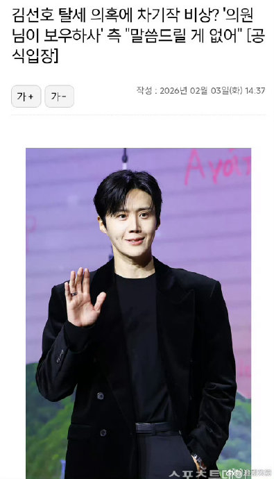 金宣虎继2021年堕胎谣言后,再度在事业上升期卷入争议,被质疑遭行业针对。业内分析指出,其经纪公司Fantagio对艺人财税管理长期疏漏,同公司车银优逃税案赔偿达200亿韩元,暴露资本运作的灰色地带。