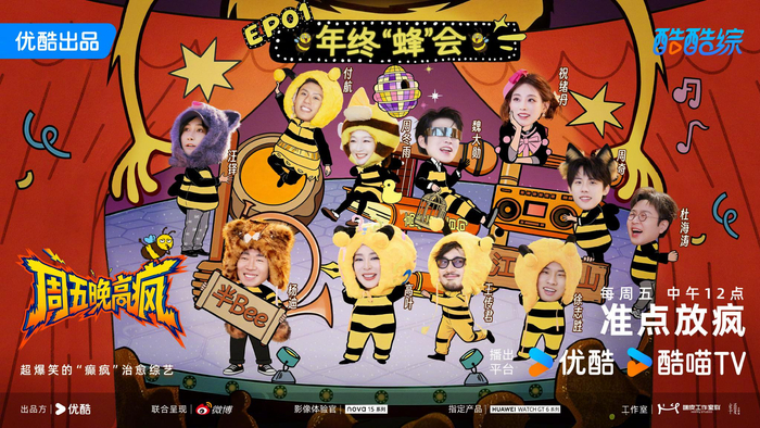#周五晚高疯# 快看,快乐冲击波正在发射!@付航脱口秀 @高叶ChLoe @王传君 @汪铎 @魏大勋 @杨迪 @周冬雨 @周奇2000 @祝绪丹Bambi(按姓名拼音首字母排序)和首期嘉宾@杜海涛 @徐志胜1995 邀你加入多巴胺狂欢~还不快快和他们一起,来“蜂”会看看到底有多疯?2月6日起每周五中午12:00上优酷,一起打包快乐,满血出发!