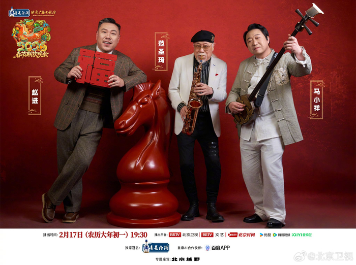 #北京台春晚第三波阵容官宣# @范圣琦 马小祥 赵进 @univu5 将带来一场融合传统与创意的舞台对话,用音乐编织温暖,以艺术点亮新春~2月17日大年初一19:30,锁定#北京台春晚# ,邀你一起共赏!#春晚大赏#