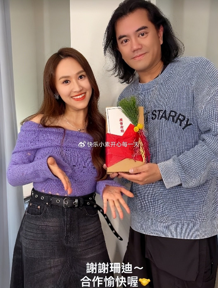 派翠克和代班主持吴姗儒Sandy晒合影照片,他们手里拿着红包,然后配文说:今年辛苦啦!继续一起努力