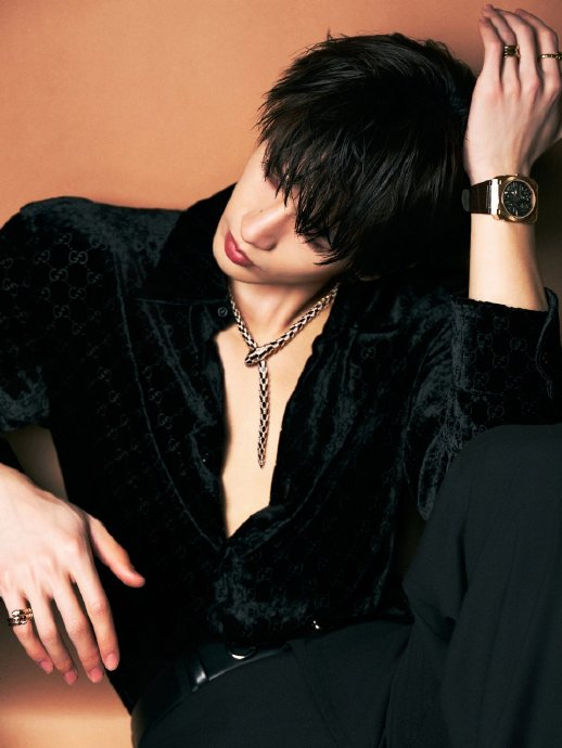 2. 矛盾美学载体:冷白肌肤、雕塑般骨相与190cm身高构成“美男”基底,而眼尾下垂带来的疏离感、鼻翼旁小痣增添的破碎气质,天然适配“蛇蝎”的冷冽攻击性。湿发烟熏妆与深V西装的造型则放大了这种矛盾张力。