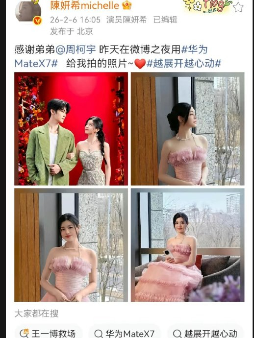 2026年2月5日,陈妍希在微博之夜盛典获得“年度闪耀演员”奖项。发表感言时,她特别提及搭档周柯宇:“谢谢弟弟周柯宇带来了最好的李雾。”这一表述中的“李雾”是周柯宇在热播剧《狙击蝴蝶》中的角色名,谐音“礼物”,巧妙呼应剧中设定。导播同步将镜头切向台下周柯宇,捕捉到他专注凝视舞台、腼腆微笑鼓掌的瞬间,引发观众席爆发最高分贝欢呼,被网友称为“神仙切镜”。