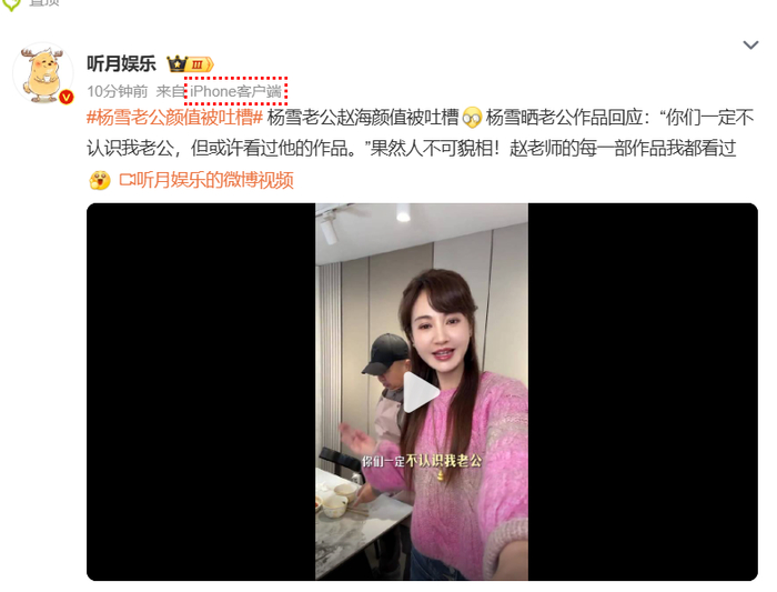 从杨雪晒出的视频里能看到,赵海站在杨雪身边,个子不算高挑,身形微胖,长相更是普通到扔在人群里就找不着的程度,和颜值出众的杨雪同框,瞬间被网友吐槽“颜值不搭”,甚至还有人开玩笑说俩人站在一起,颇有几分“父女既视感”。