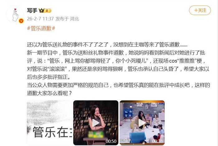 然而,道歉只是第一步。这场风波也再次给所有公众人物提了个醒:收下粉丝沉甸甸的心意,就意味着收下了一份需要珍视的责任。处理不当,伤的不只是感情,更是自身的公信力。管乐能否真如她所说,在批评中“长记性”、严格规范自己,还得看日后的一举一动。