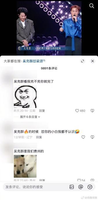 支持吴克群:多数网友认同其“保护音乐人创作积极性”的立场,认为梁源将专业批判上升为人身攻击(如“装货”)。吴克群“理性解围”的表现被赞“展现前辈担当”。