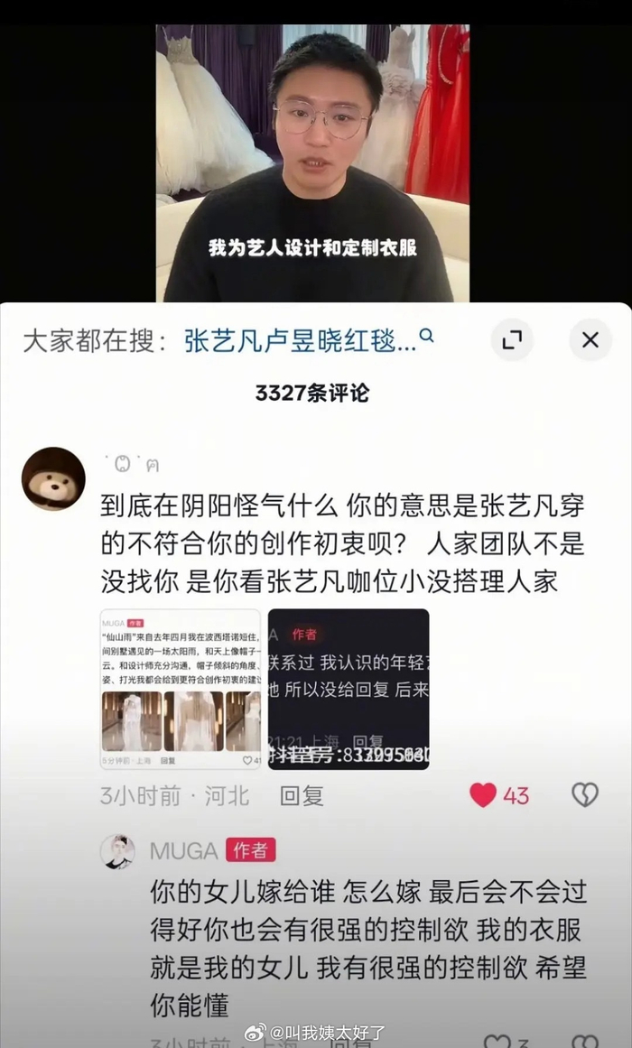 张艺凡礼服设计师称未获沟通,网友指其曾联系被忽视 叫我姨太好了 优质影视领域创作者 02.0812:29 关注 张艺凡微博之夜的那条裙子设计师在阴阳怪气,说对方没有直接和他们联系,事先不知情。网友打脸说是联系了的,设计师觉得人家咖位小没理。
