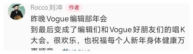 今天(1月24日),vogue编辑总监刘冲晒出了年会的一些动态。他写道“vogue编辑部年会到最后变成了编辑们和vogue好朋友们的唱K大会。”
