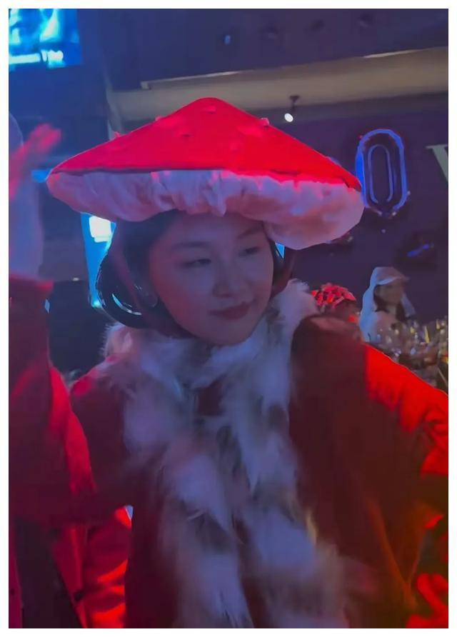 画面一转,就看到了金靖,刚生完孩子不久的她身材恢复得不错,还是一如既往的搞怪。只见她头戴一顶夸张的红色帽子,戴围脖,穿红色上衣,下搭白色裙子,跳得很是投入。