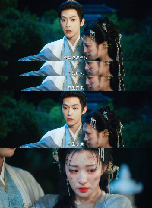 石阶的垂直空间暗示权力阶梯,俯拍镜头中庾晚音的渺小与仰视镜头里夏侯澹的压迫感,构成天然戏剧张力。静态截图即可传递完整故事链,完美适配短视频传播,韩网热帖直言“无需字幕也能心碎”。