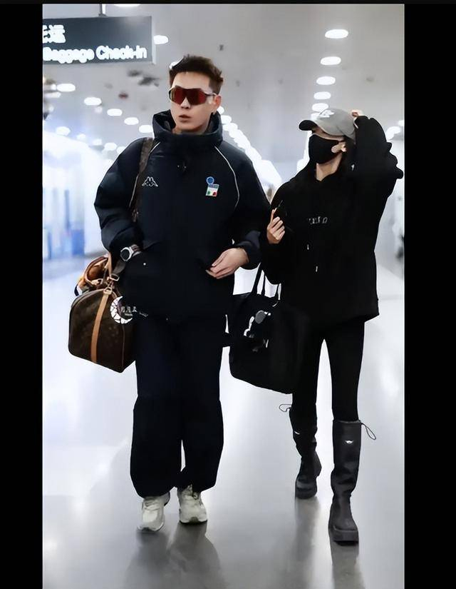 夫妻同框,吴谨言洪尧机场合体,幸福感十足!