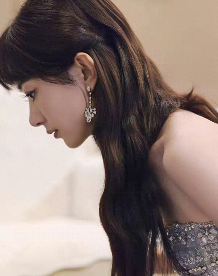 这次纪梵希官宣活动上,赵丽颖的造型更是堪称红毯教科书:利落盘发凸显天鹅颈,黑色抹胸吊带长裙勾勒曼妙身线,露背设计在含蓄中释放先锋态度,一抹红唇点亮整体妆容,既明艳又冷峻,完美融合了东方古典美学与现代高定精神。网友直呼“这才是顶奢该有的样子”,而品牌放出的预热视频里,她切换黑短发西装与抹胸黑裙双造型,飒爽与柔美并存,更是把“无所限,超一线”的品牌理念诠释得淋漓尽致。