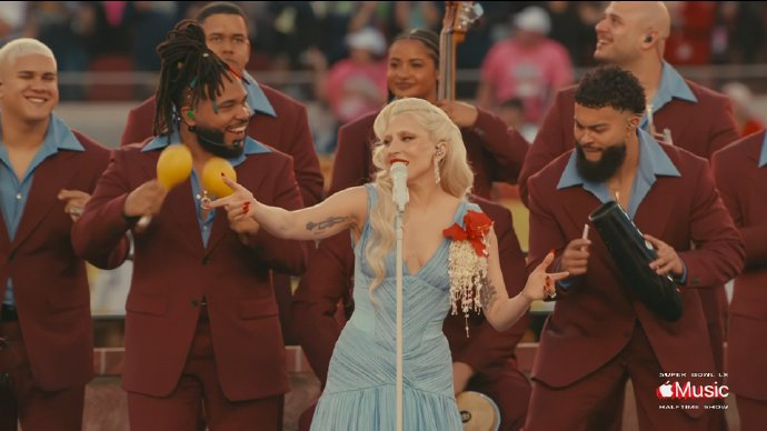 极致保密成就现象级传播:演出前仅少量彩排片段流出,Gaga的参与直至登台时刻才揭晓。这种反营销策略引发社交媒体实时爆炸式传播,#LadyGaga空降超级碗中场秀#话题阅读量半小时破亿。