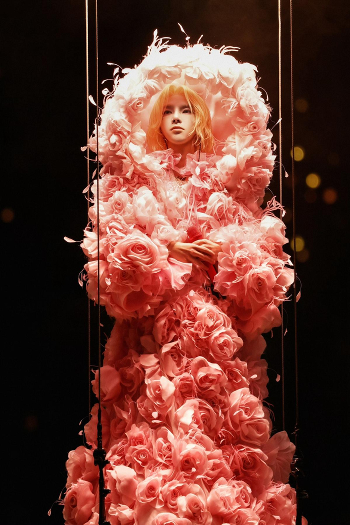 华晨宇身着以花朵为灵感的服装,从12米悬空舞台惊艳出场,一首充满生机和希望的《向阳而生》点燃了现场观众的热情。《异类》、《拆弹专家》、《黑白艺术家》、《我管你》摇滚组曲节奏强劲,他尽情释放音乐能量,表达自我态度,现场歌迷进入音乐狂欢模式。《七重人格》开启了演唱会的国风乐章,10位民乐家登台演奏唢呐、箫、琵琶、古筝、巴乌等传统乐器,这是他对音乐的探索及对传统文化的致敬与传承。华晨宇收放自如的嗓音,将《七重人格》、《忒修斯的船》、《Here We Are》、《蜉蝣》中复杂的情绪表达的淋漓尽致、层次分明,传统乐器的加入让歌曲更具张力。值得一提的是,华晨宇与民乐家纷纷佩戴上广绣胸针,广绣是广东著名的非遗文化之一,以这样的方式弘扬非遗文化,让更多人领略到非遗文化的独特魅力。《虚幻与现实》、《不重逢》、《疯人院》、《人之爱》等歌曲唱出了人生每个阶段的感受与体悟,歌声中饱含自己与歌迷成长的回忆。