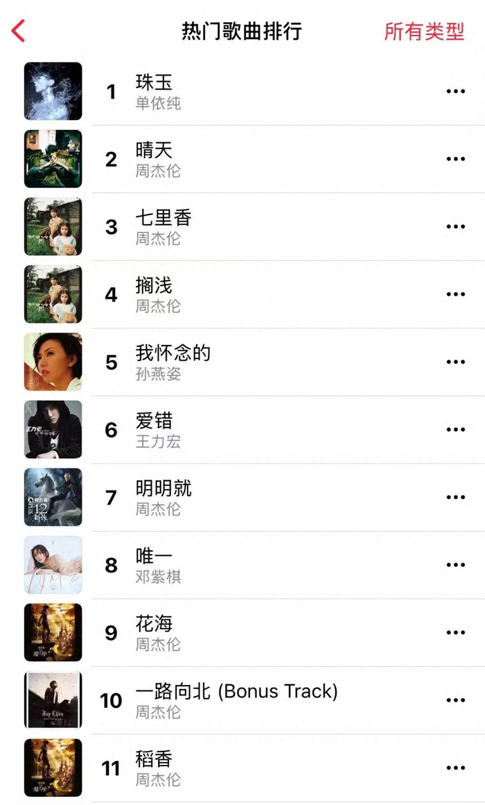 最新:苹果音乐热门歌曲排行榜上,单依纯最新单曲《珠玉》超越周杰伦,登上排行榜第一名。