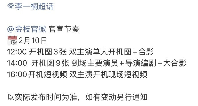 #李一桐金枝官宣节奏##李一桐金枝开机官宣节奏# 金枝今日开机 官宣节奏🈶️