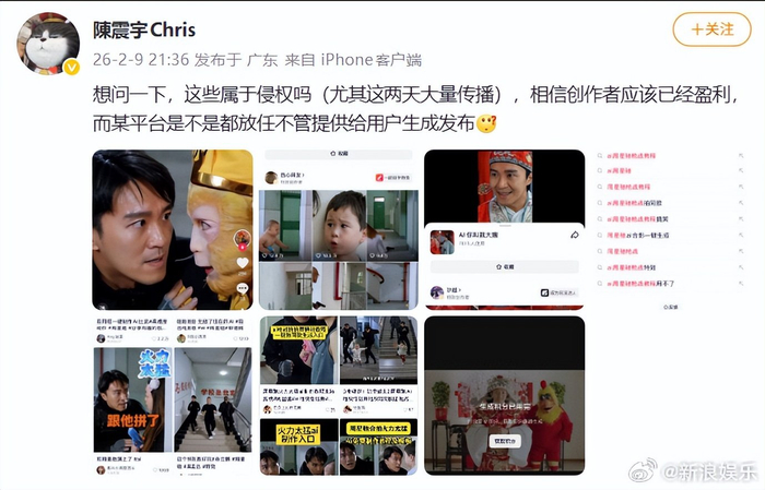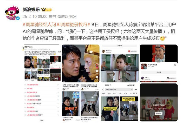 一则来自周星驰经纪人的公开质问,瞬间在网络上炸开了锅。据2月10日报道,2月9日,周星驰经纪人陈震宇在微博直接晒出某平台上用户AI生成的周星驰影像,发出灵魂拷问:“想问一下,这些属于侵权吗?”他特别点出,这些内容正被大量传播,创作者很可能已经盈利,而平台似乎“放任不管”,甚至提供了生成工具。