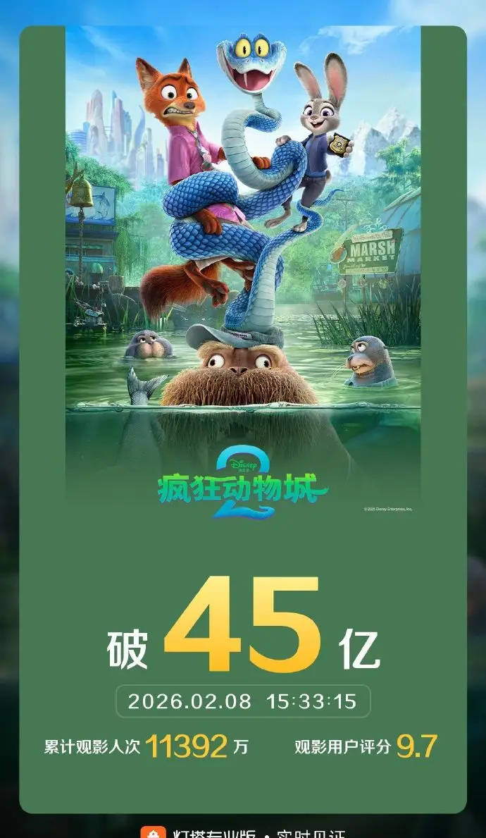 动画电影《疯狂动物城2》上映75天!总票房突破45亿_杰拉德·布什_拜伦·霍华德_妮弗·古德温