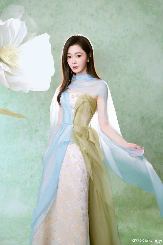 #宋轶央视网络春晚出图##宋轶青绿色拼接长裙# 宋轶央视网络春晚出图