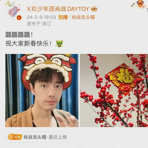 2024年除夕,肖战送出祝福:“龘龘龘龘!祝大家新春快乐!”