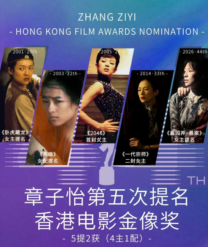 章子怡第五次金像奖提名,第四次入围最佳女主