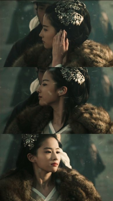 白发相依的梦境独白:自刎前夕,虞姬依偎将星陨落的项羽,在漫天飞雪中虚构白头偕老的幻境:"我梦见满头白发的恋人...那是我和你"。刘亦菲以蒙着水雾的含笑泪眼,将凄绝甜美的矛盾情绪注入台词,让悲剧张力直达巅峰。