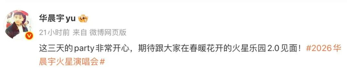 而这一项目的落地早有前兆。据此前报道,企查查显示,2025年12月1日,华晨宇持股99%的上海圣恒鸿音文化传播有限公司,已与“火星演唱会”主办方北京亚美时代文化传媒有限公司共同成立“云南温暖的房子文化旅游有限公司”,注册资本200万元,经营范围涵盖旅游业务、票务代理等。该公司名称正对应华晨宇的作品《温暖的房子》,也与此次演唱会宣布的“火星乐园2.0”中“温暖的房子”规划相呼应。