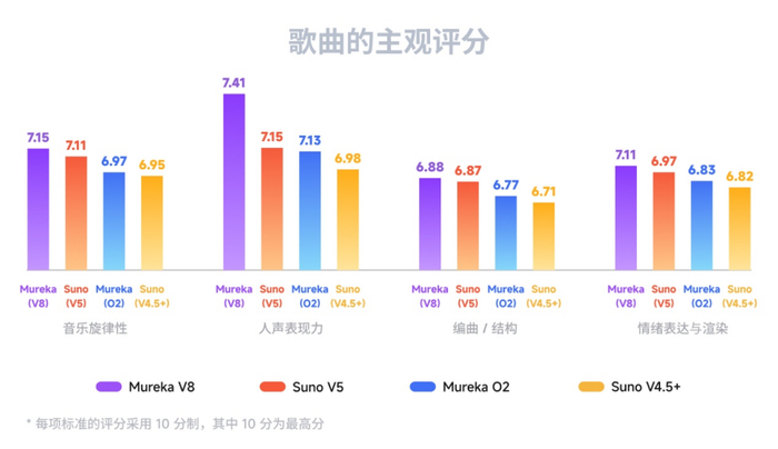 周亚辉解释,这种“工业化”能力,源于底层技术的系统性进步。据介绍,V8 的突破建立在 MusiCoT(音乐思维链)技术体系的深化、更大规模的参数训练以及强化学习的有效应用之上。这使得模型不再是声音片段的拼接,而能更本质地理解并生成具备完整音乐逻辑、情感推进和记忆点的作品。