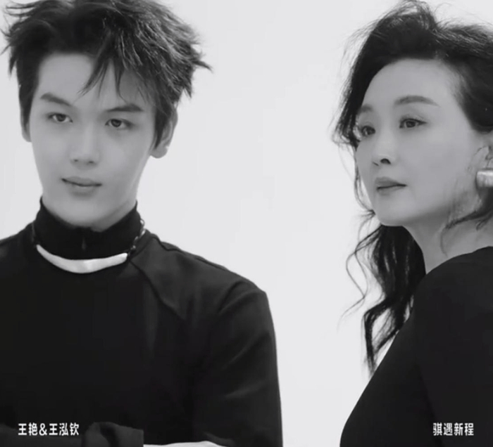 51岁王艳和儿子拍新年大片,19岁球球帅气神似张若昀,手指好纤细