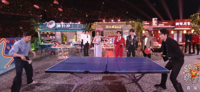 湖南卫视跨年晚会上,马龙手持锅铲和王鹤棣打乒乓球,龙队还称赞王鹤棣打球有侵略性。