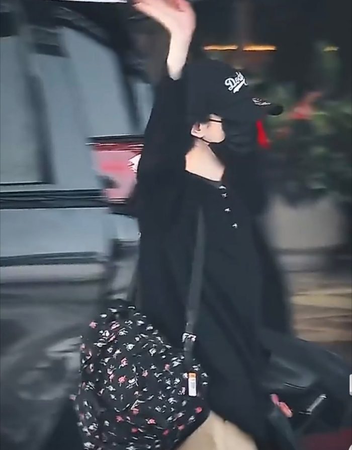 杨幂佩戴粉玫瑰发圈亮相