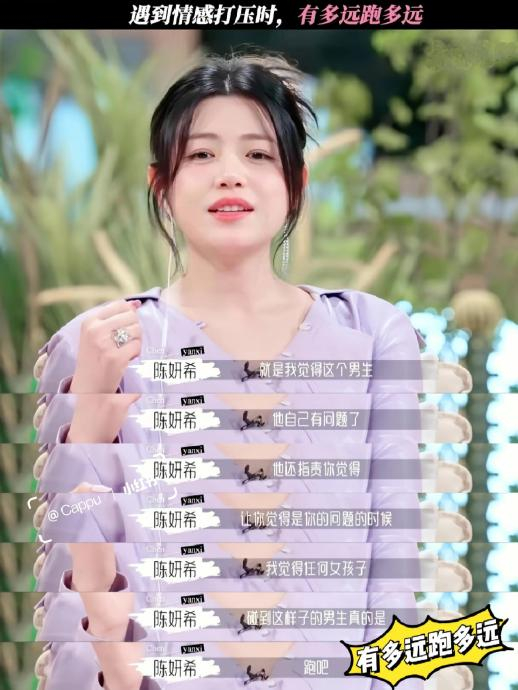 经历过婚姻争议与事业起伏,陈妍希将人生体悟转化为喜剧养分。面对外界质疑,她以通透态度回应:“允许一切发生”,并将这种哲学融入表演。在脱口秀环节,她巧妙调侃情感话题:“遇到总让你怀疑自己的男生?建议参考我的选择——跑!”,用轻松话语传递清醒价值观,让笑声蕴含思考深度。